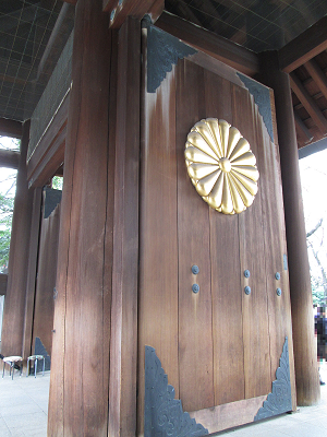 その門には菊の家紋があります。